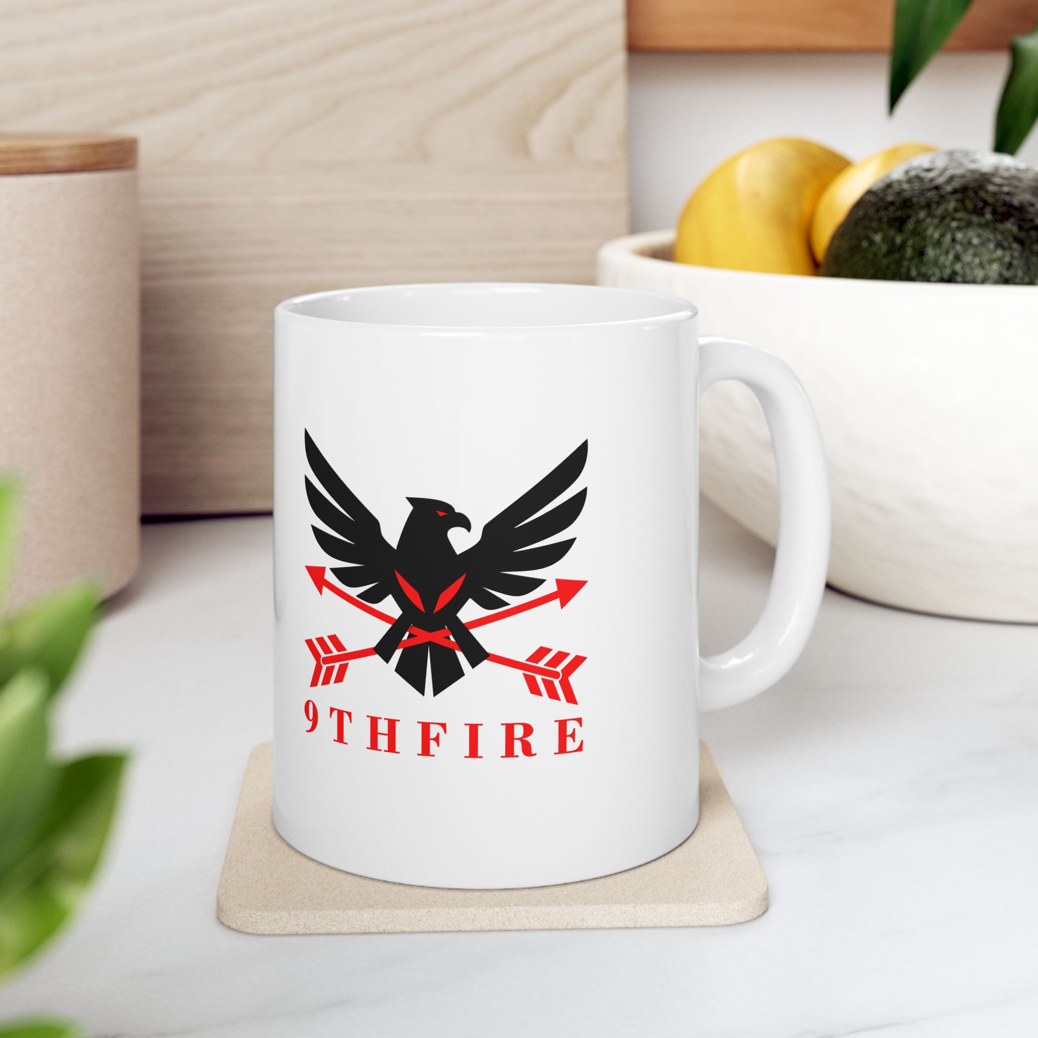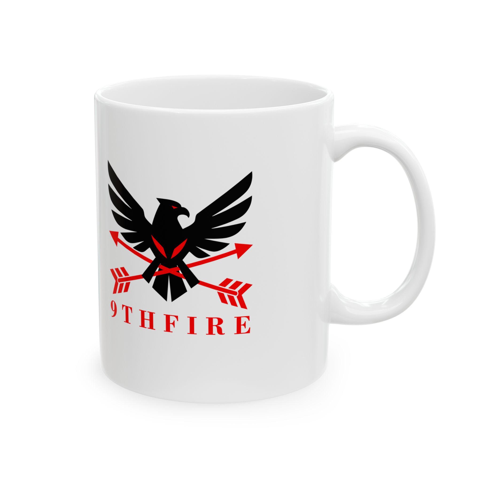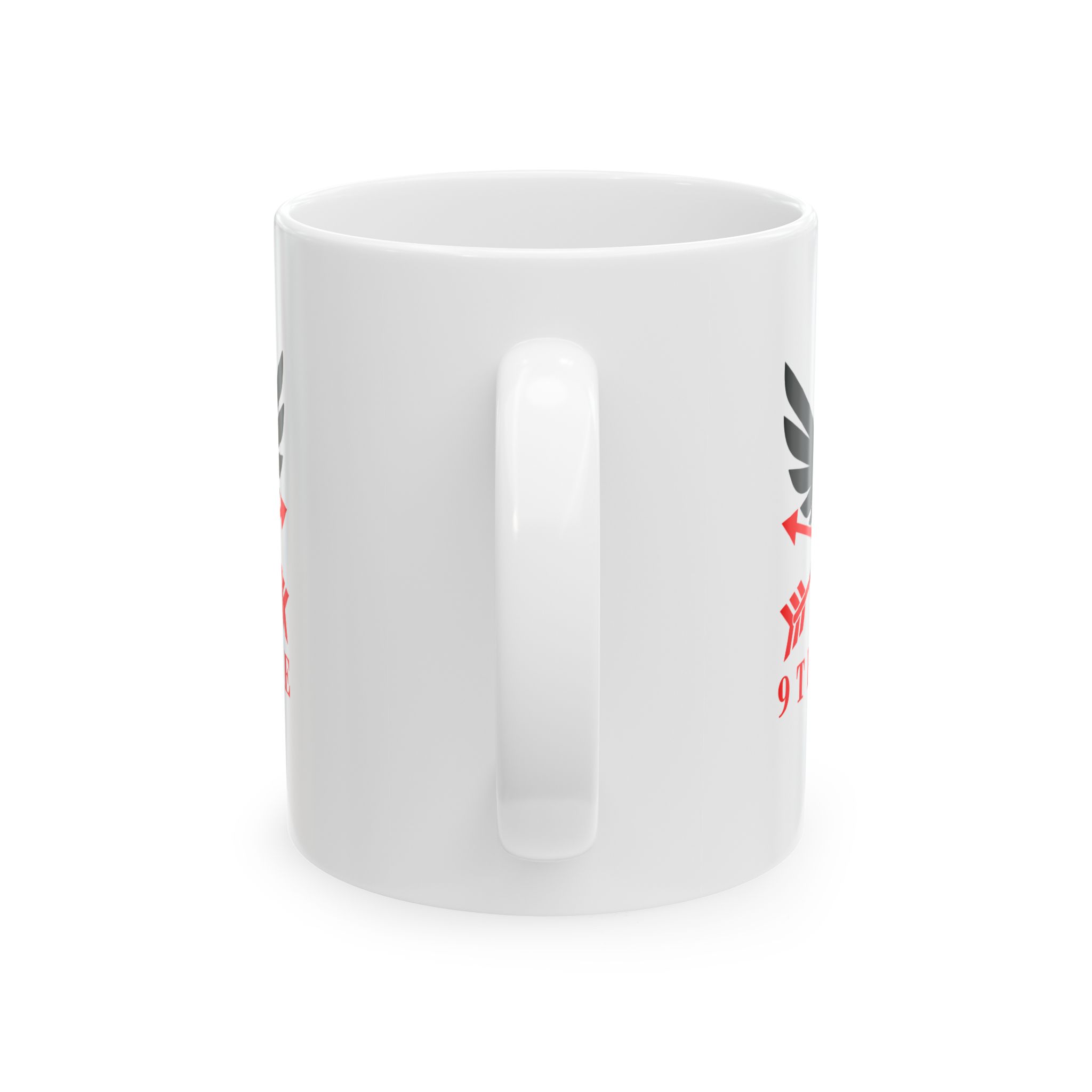 This glossy ceramic mug brings bold, graphic energy to everyday coffee and tea rituals. The white base makes the crisp black-and-red emblem pop, lending a confident, slightly vintage-military feel that suits someone who values purpose and personality in their kitchenware. It feels steady in the hand thanks to a comfortable C-handle and has a shiny finish that catches the light. Use it at your desk for a focused morning, beside a notebook while planning, or stacked into a rotating lineup with other emblematic pieces — it anchors a routine without shouting for attention.
