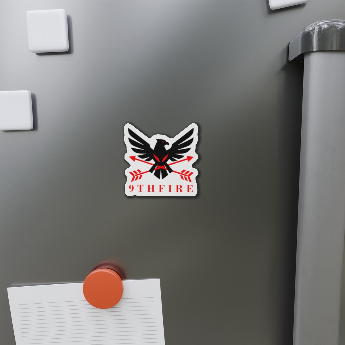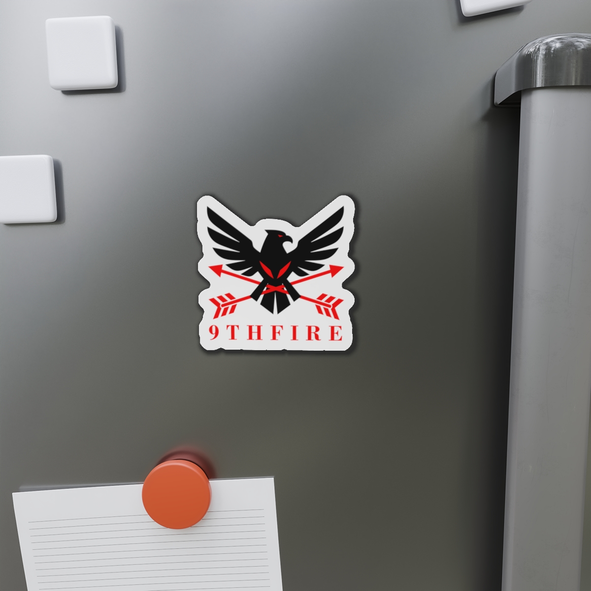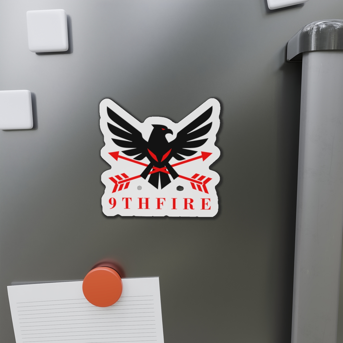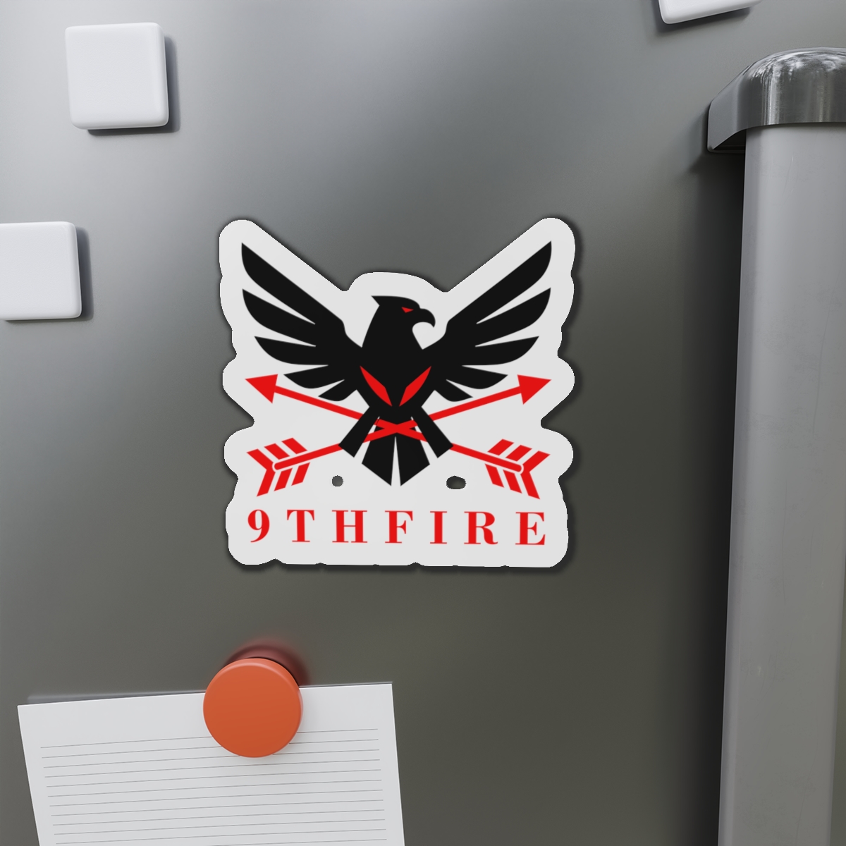 A bold die-cut magnet that brings emblematic energy to any metal surface. The sticker-like shape follows the design’s outlines, letting the black-and-red bird and crossed arrows stand out against a matte finish. Lightweight and flexible, it clings firmly to fridges, lockers, whiteboards, and more—keeping notes, photos, or small keepsakes anchored while adding a sharp, graphic accent to your space. Weather-resistant vinyl and black backing give it durability for indoor or sheltered outdoor use; choose from five sizes to match your display. This magnet feels like a small badge of identity—ready to travel with you from dorm door to workshop to kitchen.