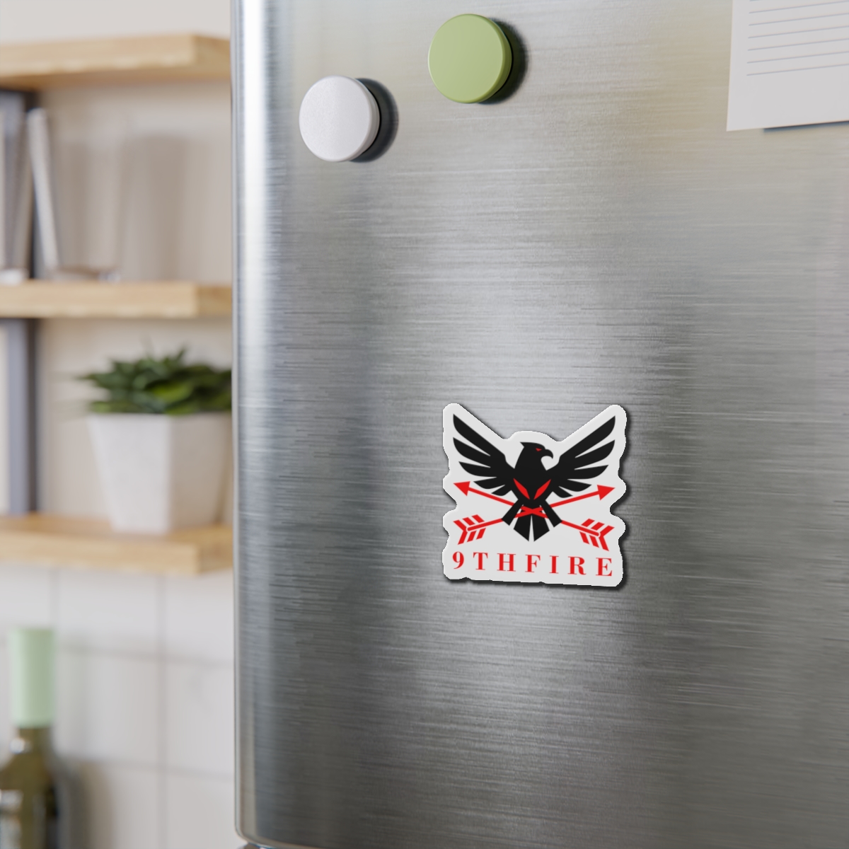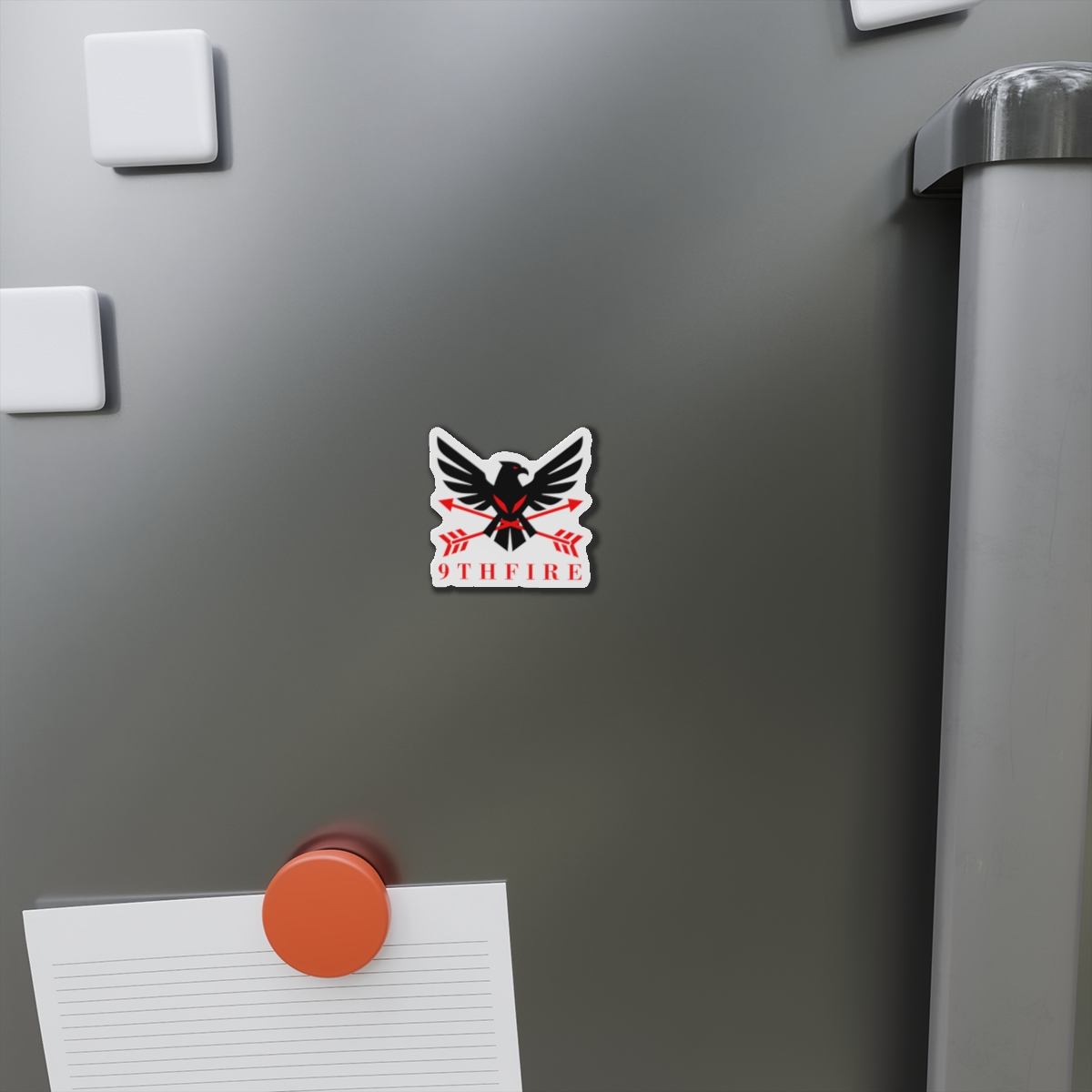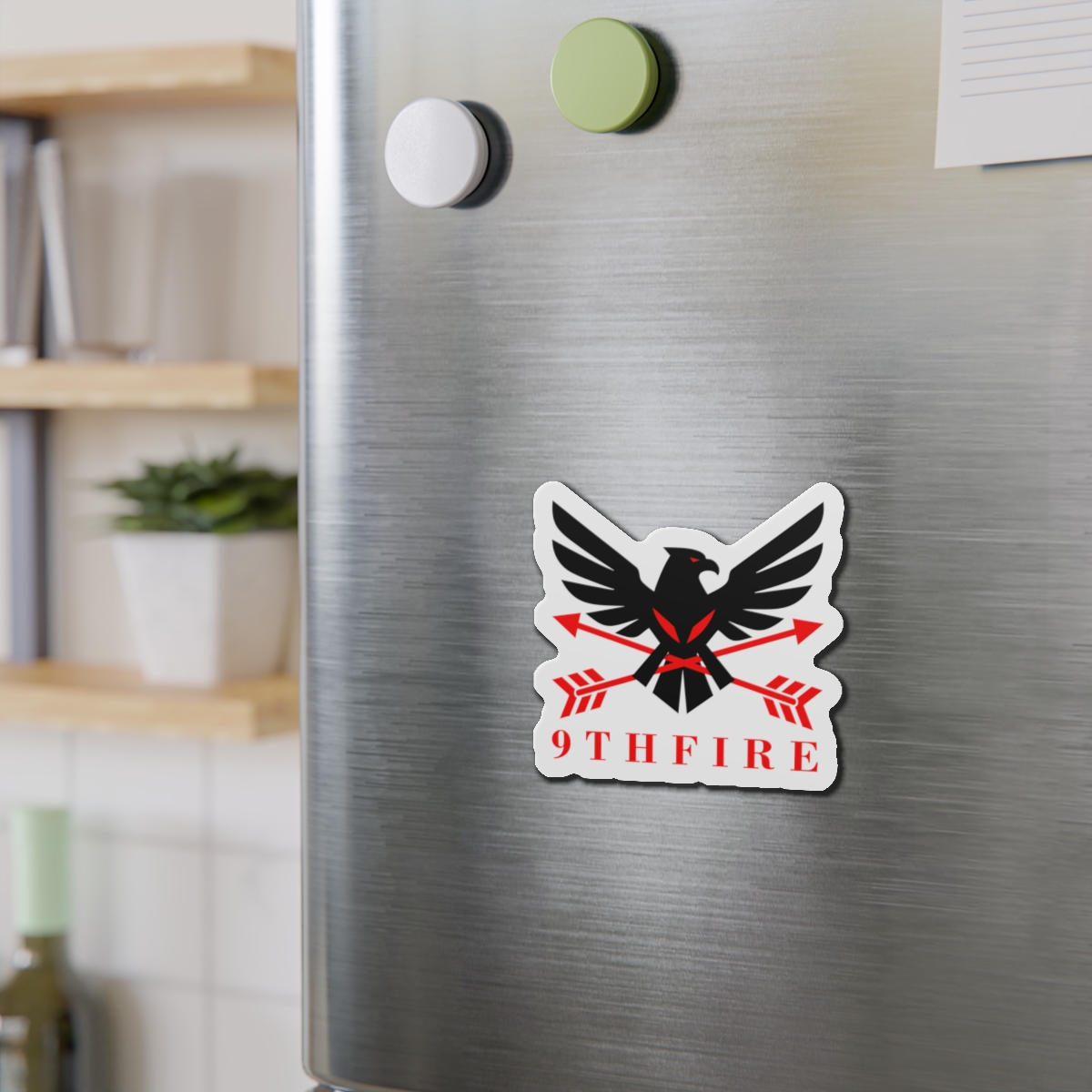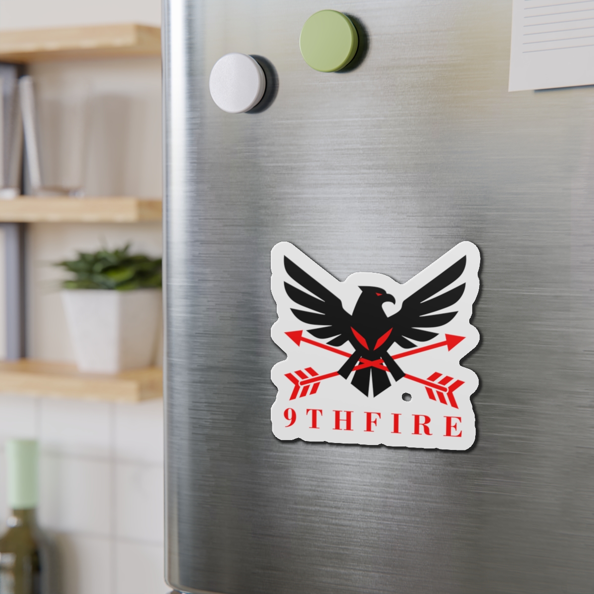 A bold die-cut magnet that brings emblematic energy to any metal surface. The sticker-like shape follows the design’s outlines, letting the black-and-red bird and crossed arrows stand out against a matte finish. Lightweight and flexible, it clings firmly to fridges, lockers, whiteboards, and more—keeping notes, photos, or small keepsakes anchored while adding a sharp, graphic accent to your space. Weather-resistant vinyl and black backing give it durability for indoor or sheltered outdoor use; choose from five sizes to match your display. This magnet feels like a small badge of identity—ready to travel with you from dorm door to workshop to kitchen.