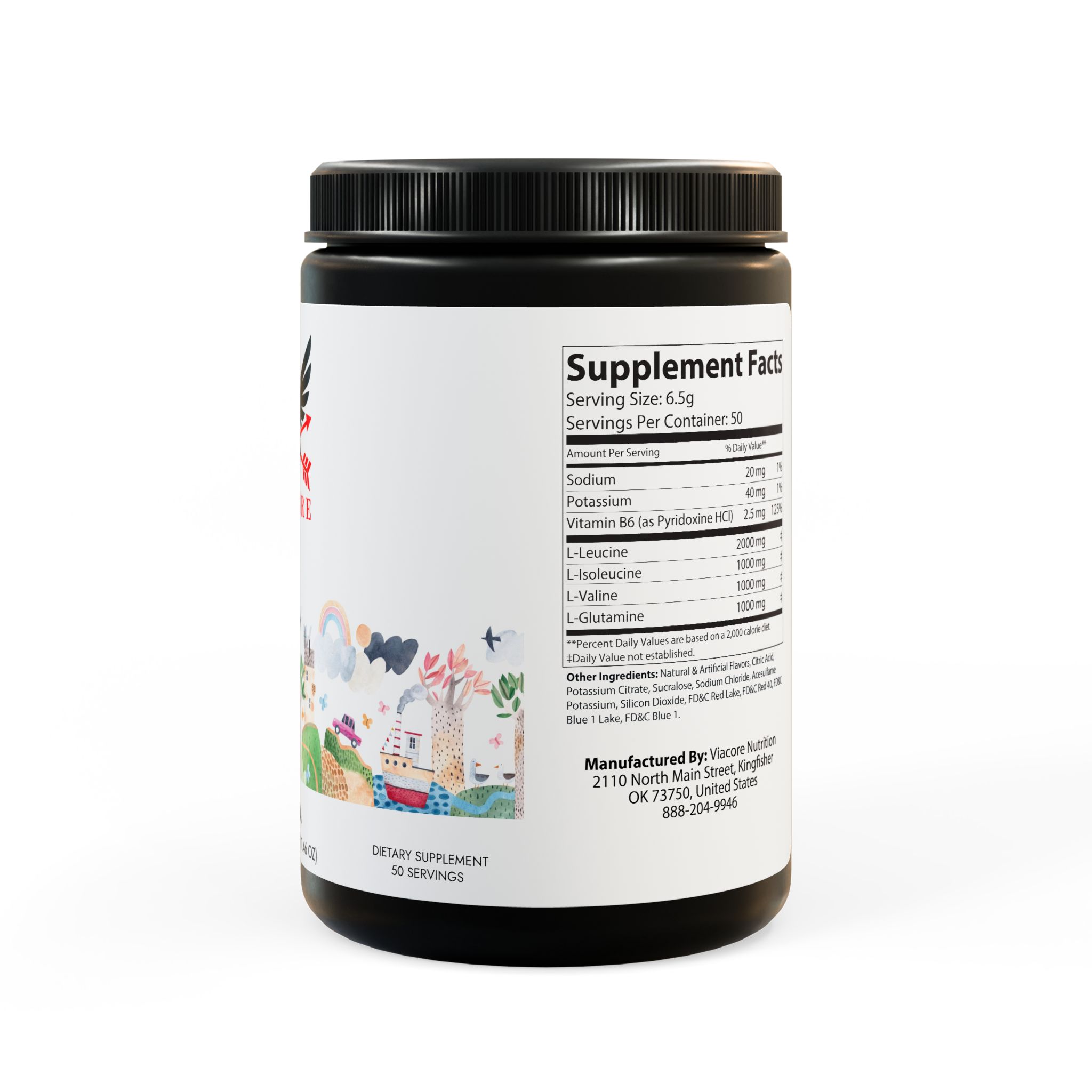 Key ingredients include Sodium, Potassium, Vitamin B6 (as Pyridoxine HCl), L-Leucine, L-Isoleucine, L-Valine, and L-Glutamine.